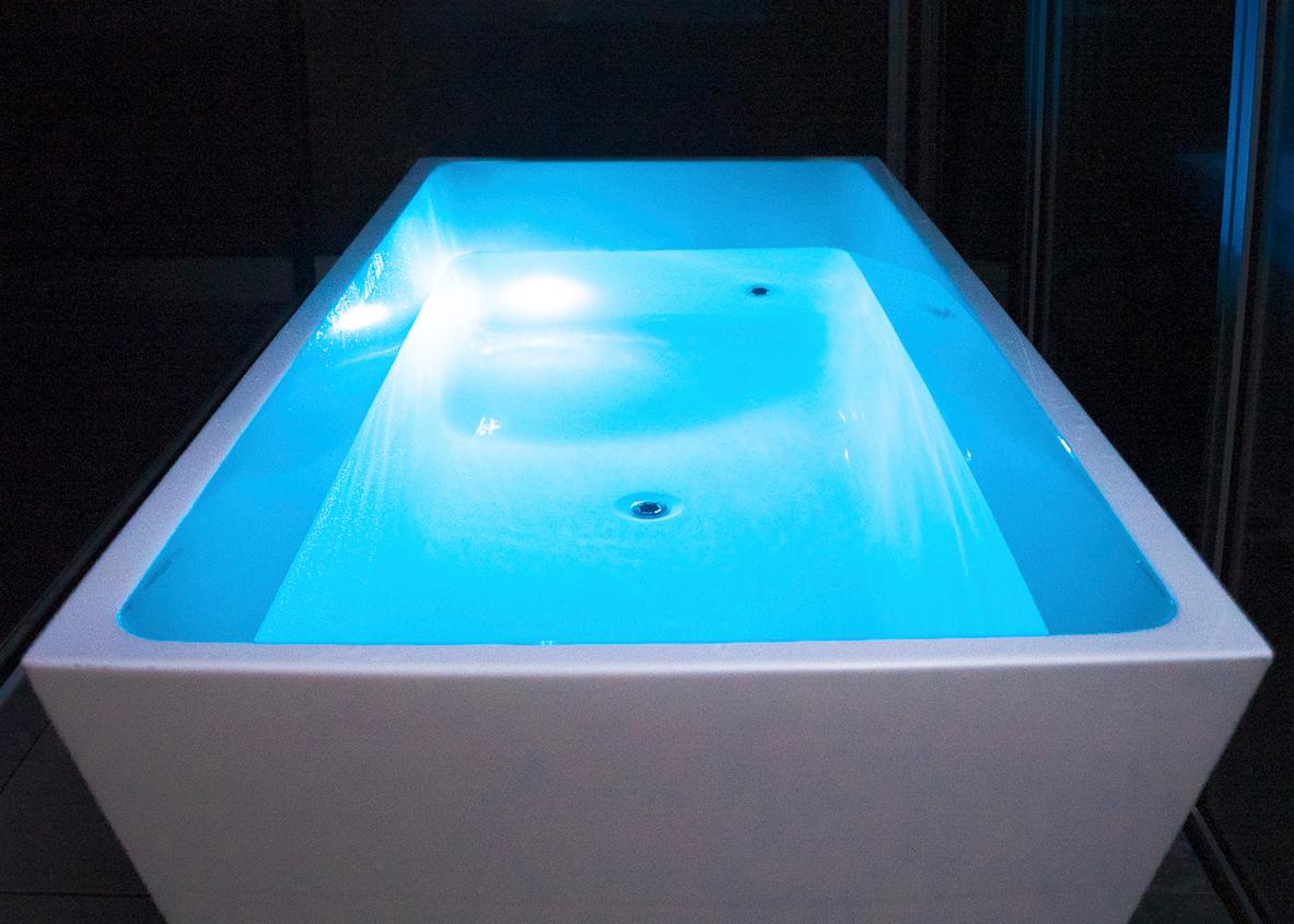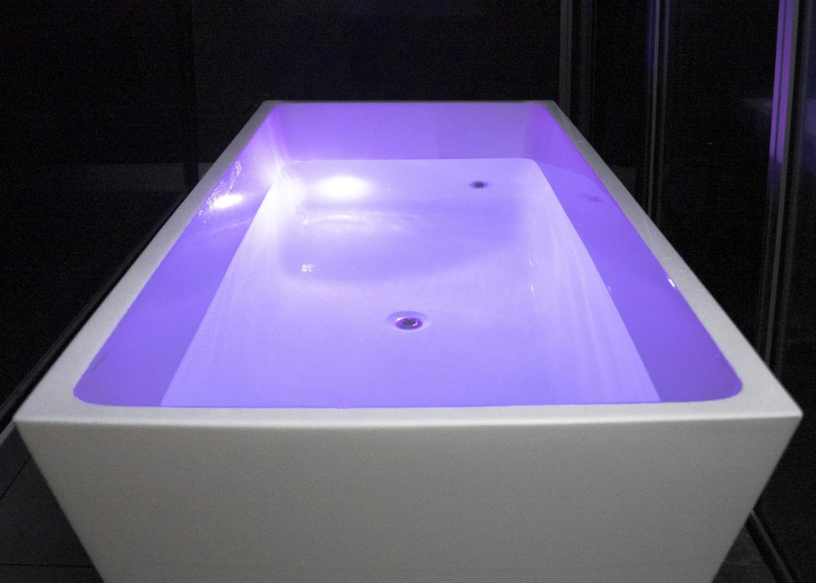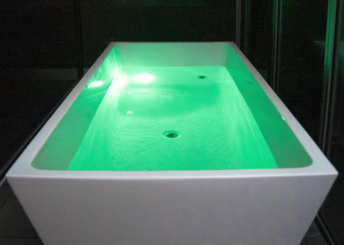 Vi udstyrede isbadet med indbygget lysterapi i 8 forskellige farver, som kan tilpasses til brugerens humør og passe ind i rummet isbadet bliver placeret i.